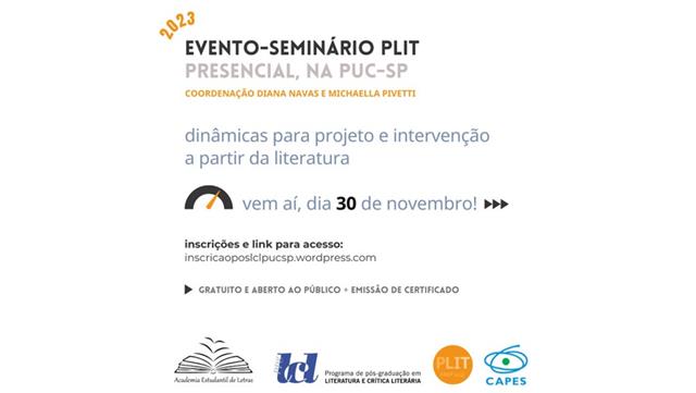 No dia 30 de novembro, quinta-feira, a partir das 8h, será realizado, na PUC-SP, o evento “Seminário PLIT: Dinâmicas para Projeto e Intervenção a partir da Literatura”.