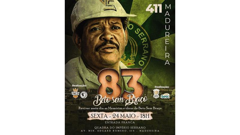 Essa será a segunda edição da roda de samba em comemoração ao aniversário de Beto Sem Braço, no Império Serrano, e conta também com a organização do Sesc Madureira. Em 2023, festejando os 82 anos de nascimento, foi inaugurado o busto do compositor na quadra do Reizinho e reuniu grandes nomes do samba, parceiros de longas datas e uma legião de fãs de todas as idades.